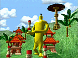 これ以外にも現在開発中のソフトの映像が公開された。中でも注目なのは「新・巨人のドシン1 (仮) 」。ディスクシステムで発売されたタイトルとの違いなどはわからないが、相変わらず独特の世界を展開してくれそう。「メトロイドプライム (仮) 」は宮本氏がE3で明らかにしたとおり1人称視点で描かれており、3Dアクションシューティングのようなイメージ。また、スノーボードゲーム「1080°GC (仮) 」、「ドンキーコングレーシング (仮) 」、「ディズニーズ ミッキー (仮) 」などが短いムービーながら公開された。